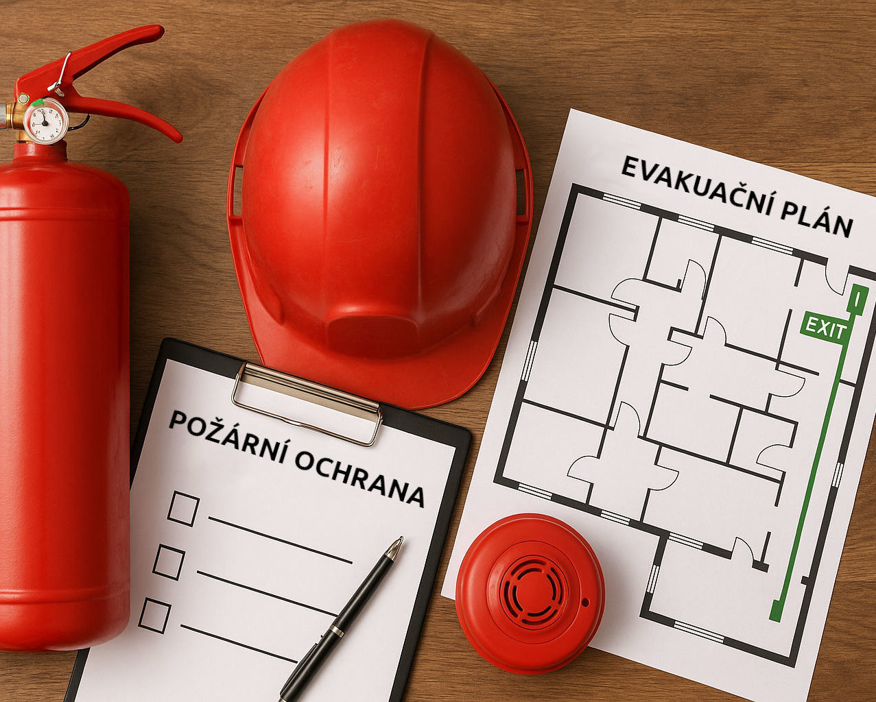 Navrhneme a zpracujeme evakuační plán budovy, včetně rozmístění hasicích přístrojů a značení únikových východů dle platných norem.